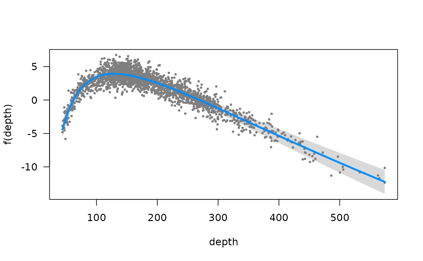 scale_x_continuous(labels = function(x) round(exp(x * pcod$depth_sd[1] + pcod$depth_mean[1]))) +