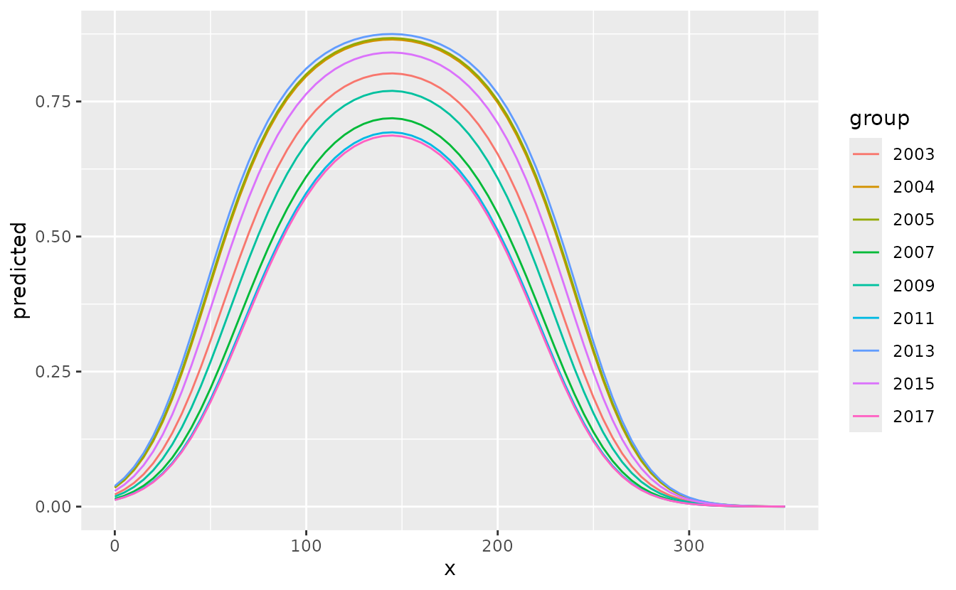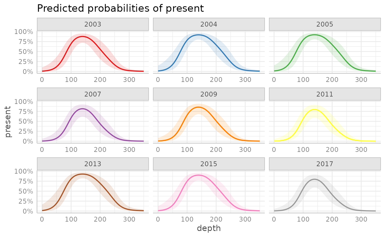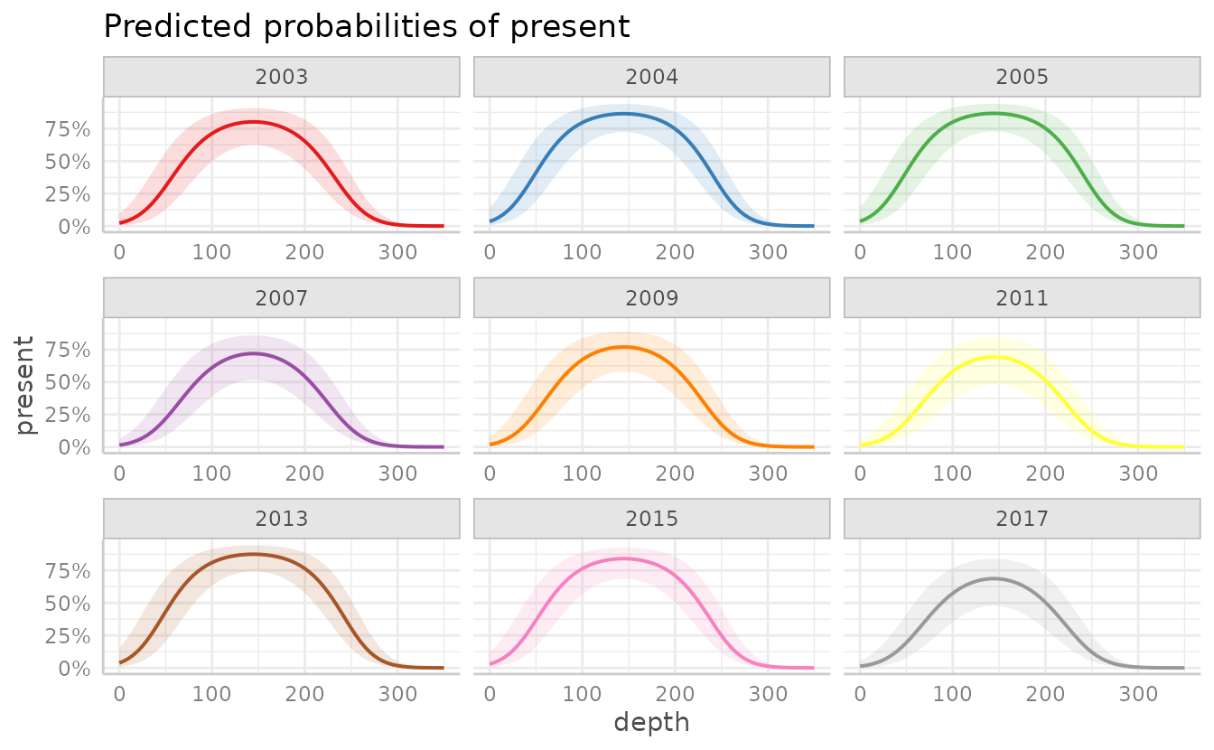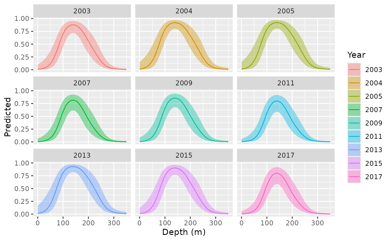 g <- ggpredict(fit, terms = c("depth [0:350 by=5]", "fyear"))