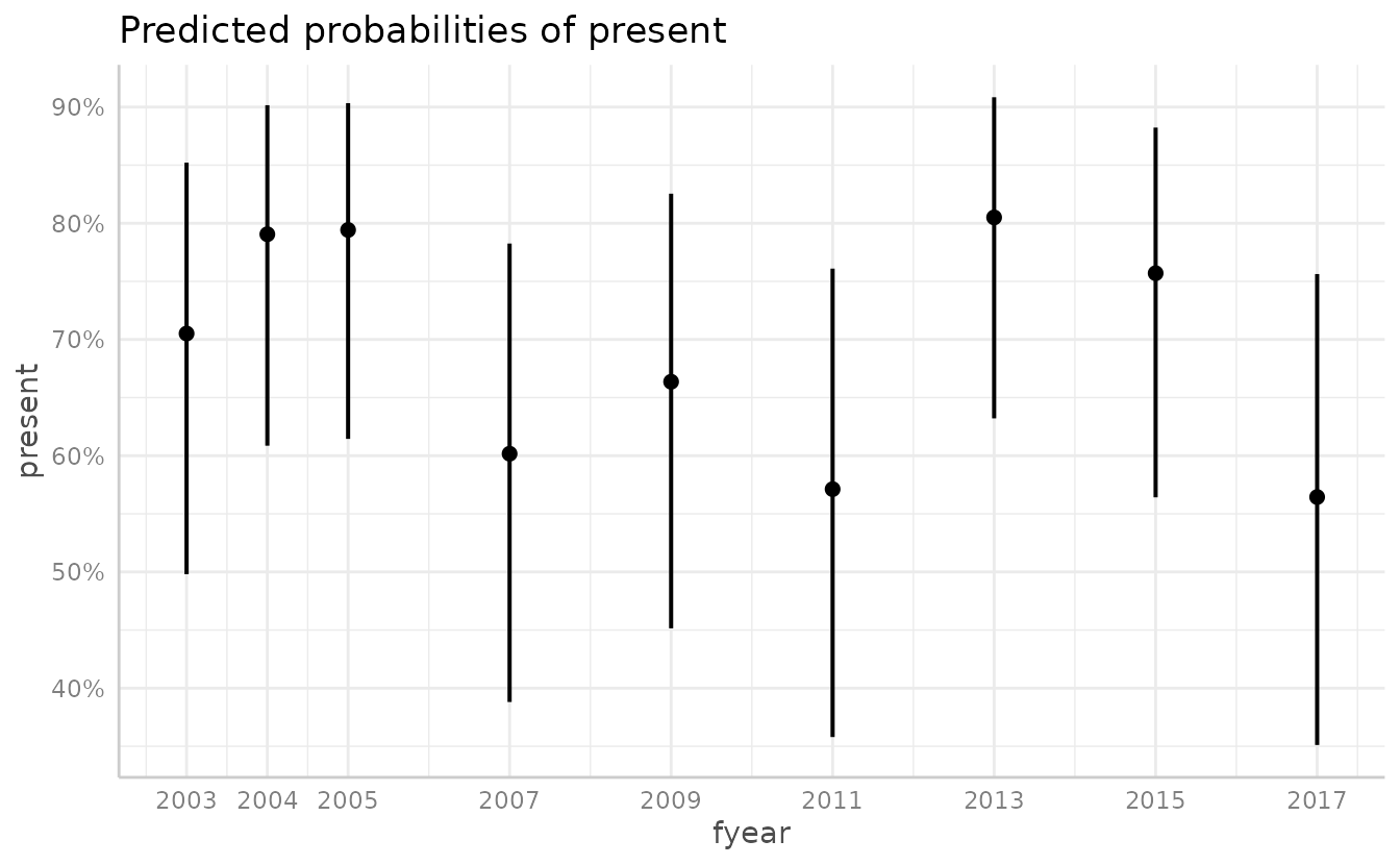 Visualizing marginal effects in sdmTMB models with ggeffects