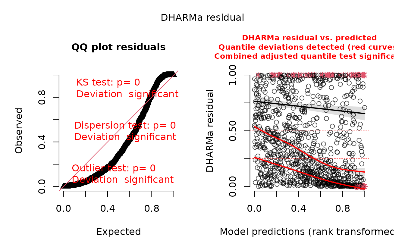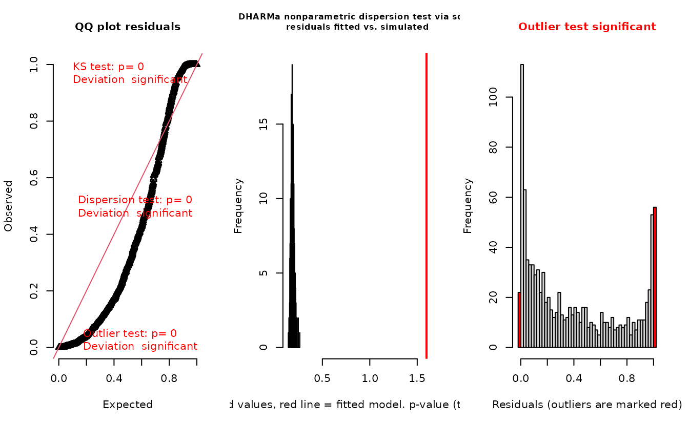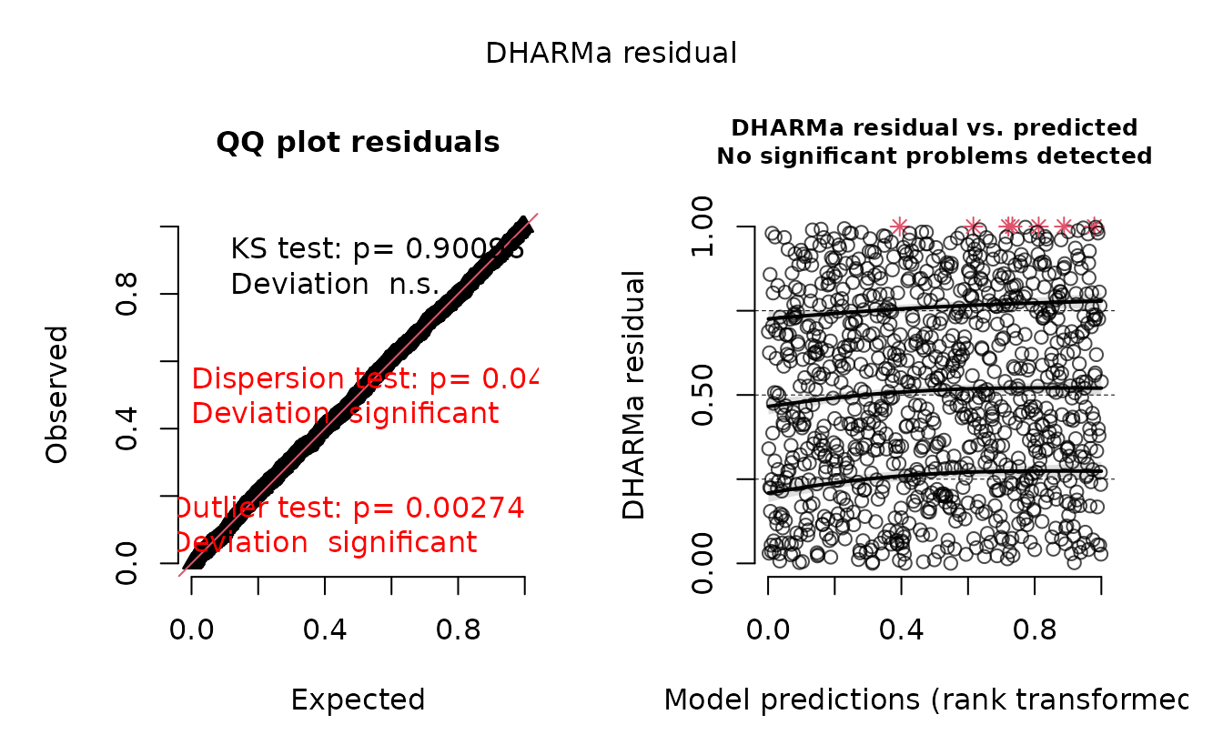 consistent with the data. DHARMa residuals, however, are returned as