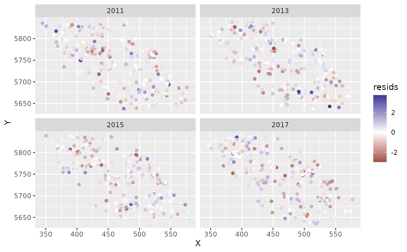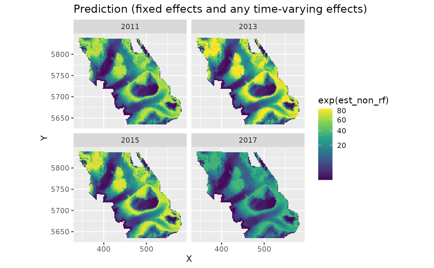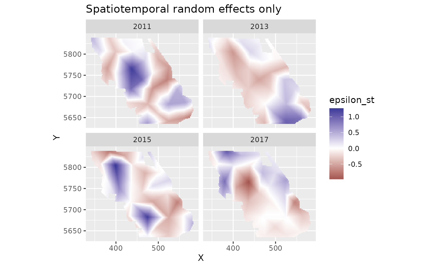 spatial_varying = ~ 0 + year_scaled, time = "year", spatiotemporal = "off")