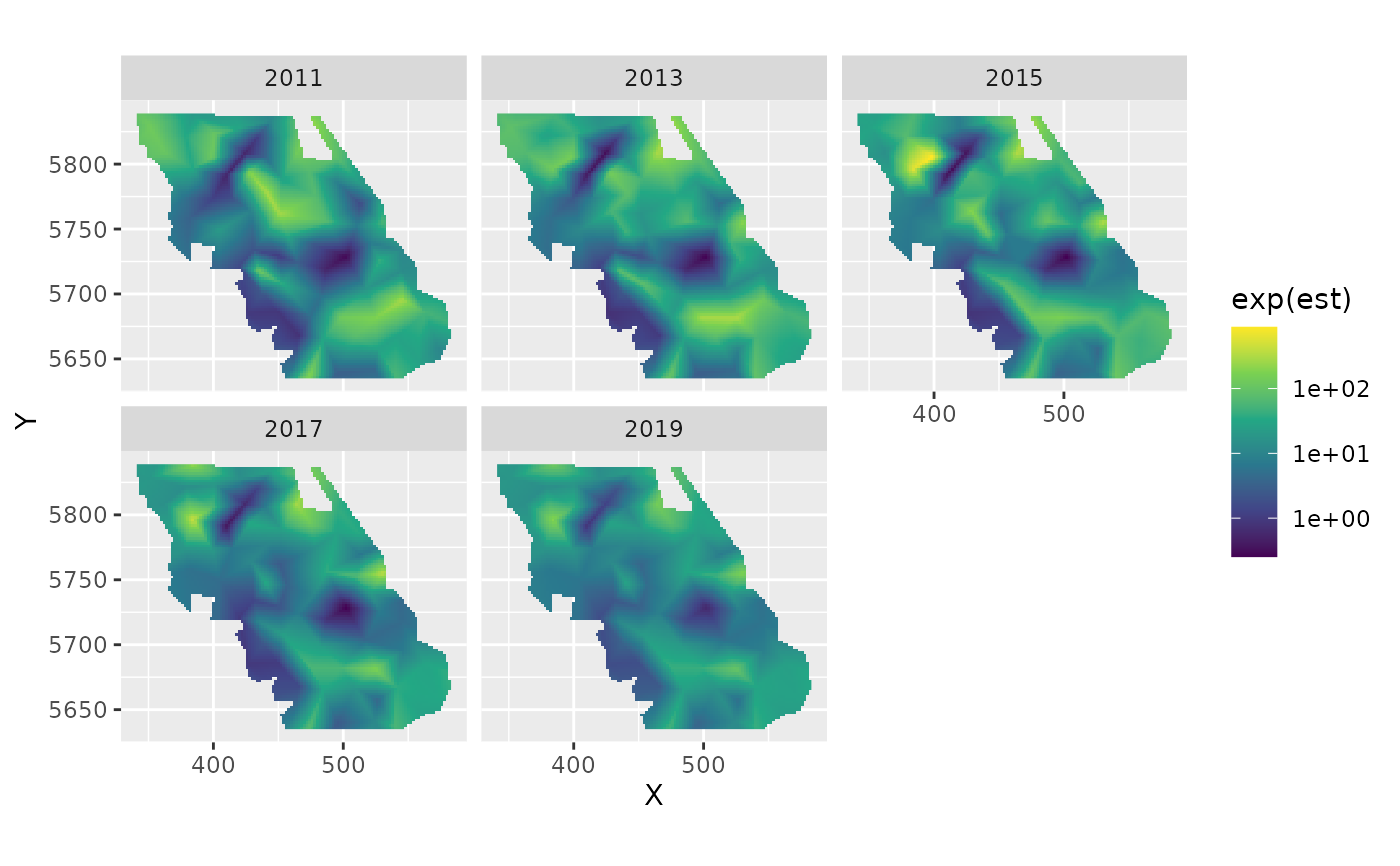time = "year", mesh = mesh, family = tweedie(link = "log")